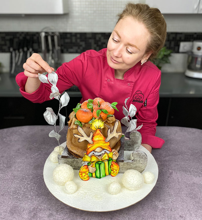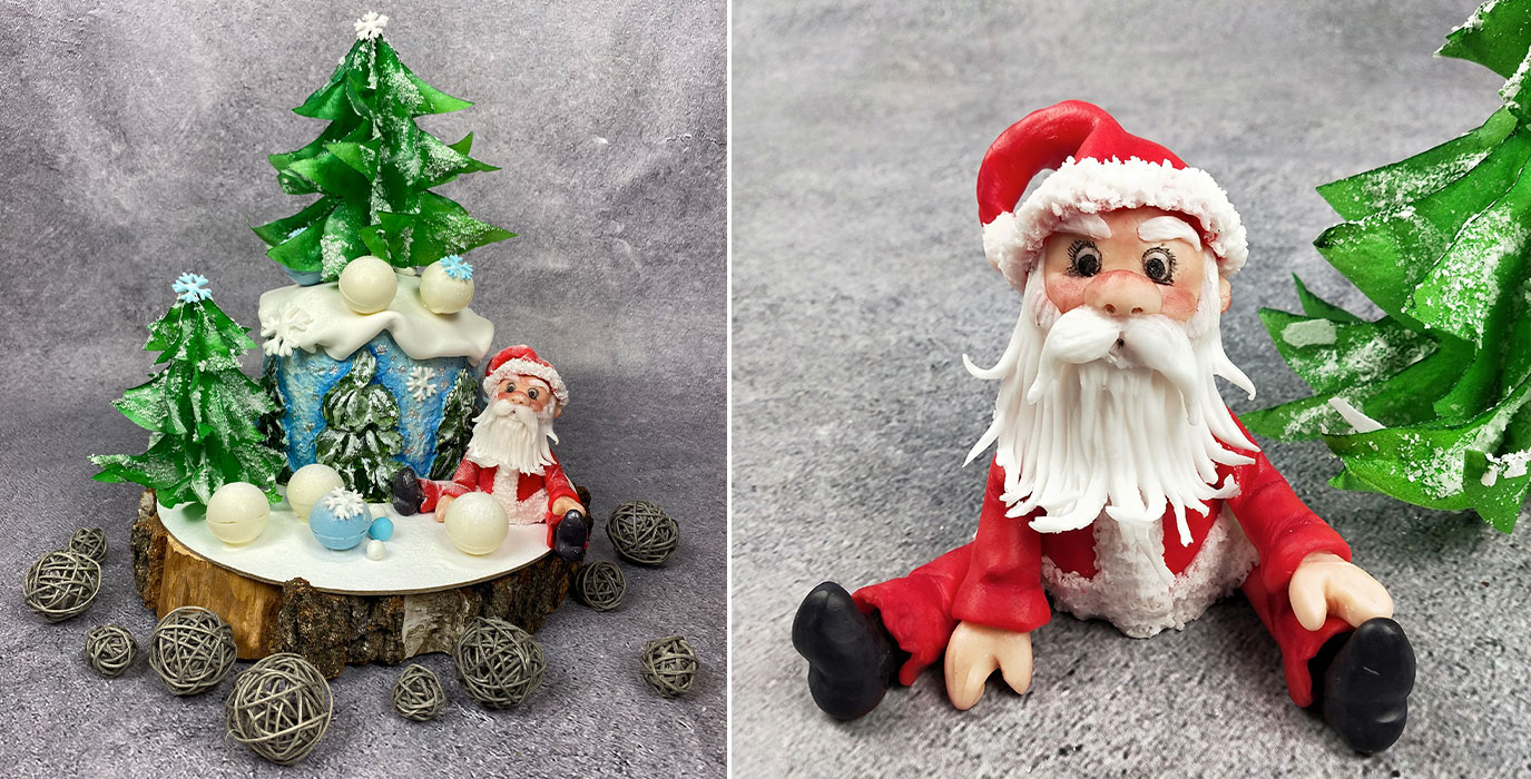 Научитесь выпекать новогодний 3D торт. Слепите веселого Санту, сделаете ёлочку. Узнаете разные техники оформления торта.