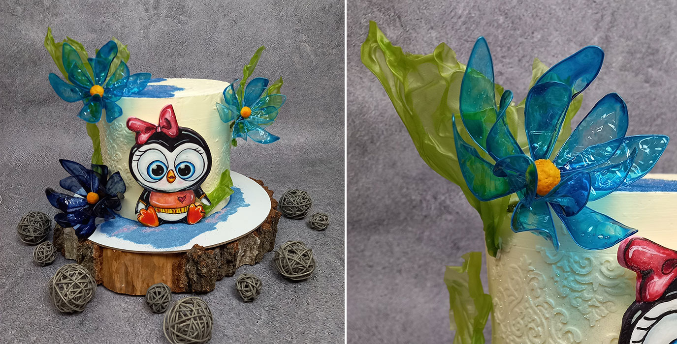 Научитесь работать с вафельной бумагой, шоколадом. Сделаете яркую аппликацию. Оригинально оформите торт.