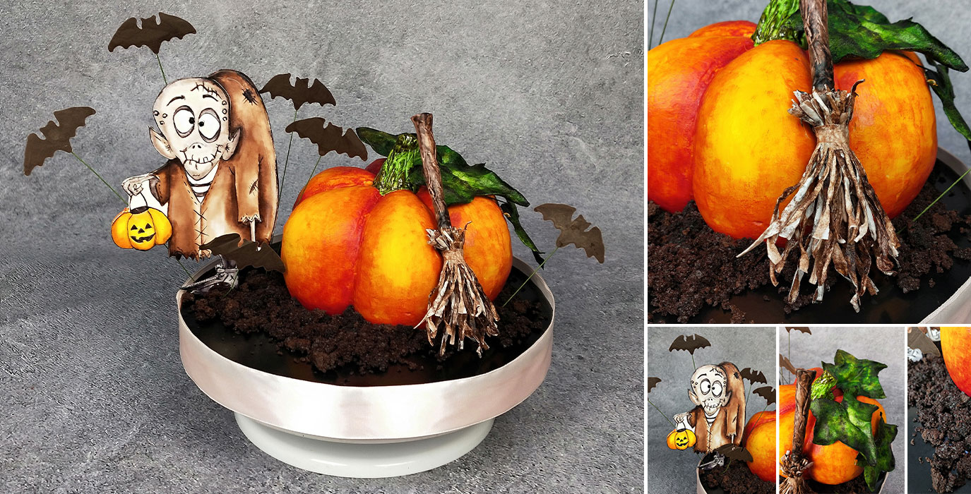 Научитесь выпекать 3D торт в виде тыквы. Сделаете аппликацию монстрика, метлу, зелень. Узнаете разные техники оформления торта.